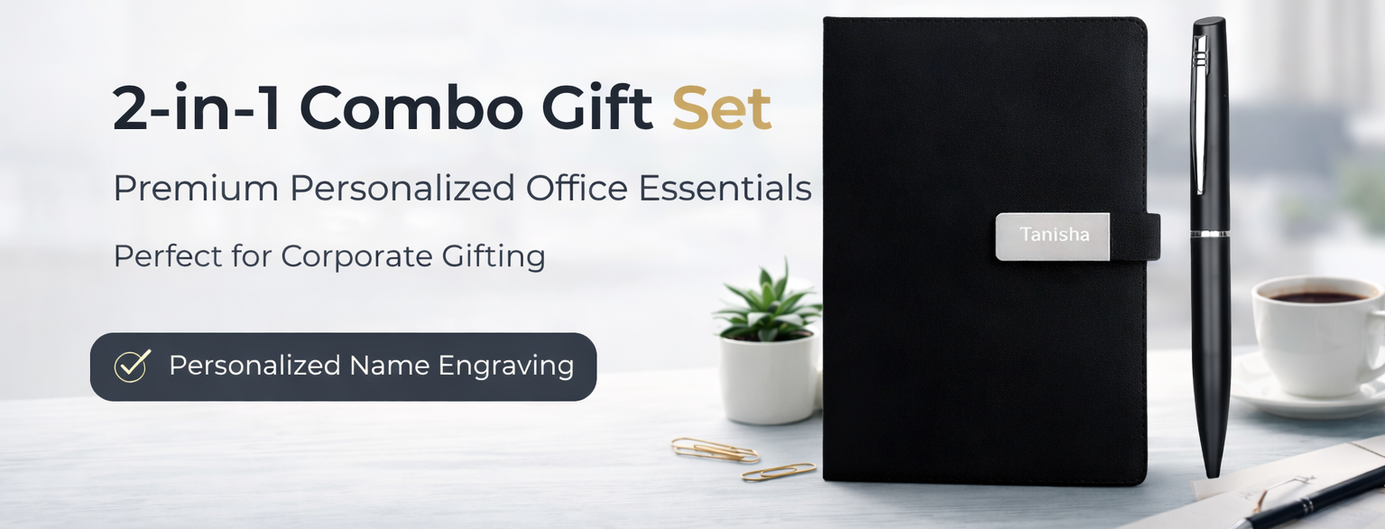 Corporate Gift Set Personalized Premium Leatherette Diary with Name Personalized Black Metal Ballpoint Pen