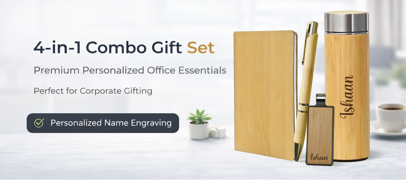 Combo Gift Set Vacuum Flask Leather Keychain Engraved Pen Custom Name Diary